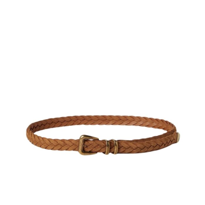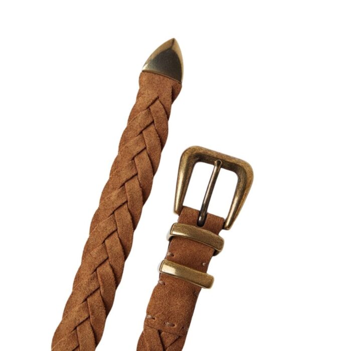 The braided design is a key feature of this belt. Expertly woven, the braids create a rich, intricate pattern that exudes elegance and adds a touch of artisanal charm. This technique not only contributes to the belt’s aesthetic but also enhances its flexibility and comfort, allowing it to mold perfectly to the wearer’s waist.