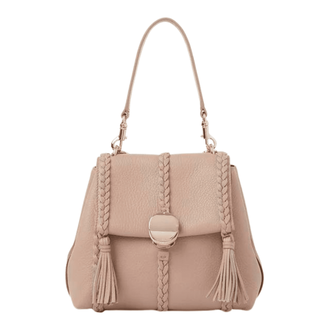 Crafted with meticulous attention to detail, the Chloe Penelope Small Soft Shoulder Bag Nomad Beige. exudes sophistication and elegance. Constructed from naturally grained bull leather, known for its smooth texture, this bag boasts a rounded flap silhouette that embodies a relaxed yet feminine allure. The design is a testament to Chloe’s commitment to impeccable craftsmanship and timeless style, featuring refined details such as leather braiding, dangling tassels, and contrasting hardware.
