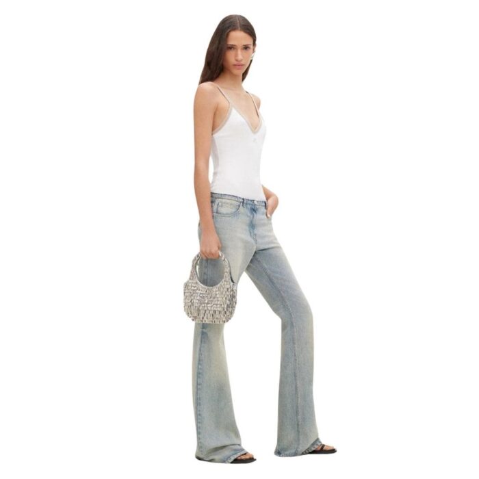 At first glance, the bag captivates with its compact yet striking silhouette. The smooth, high-quality leather or suede exterior serves as the perfect canvas for intricate embroidery, which is the hallmark of Courrèges craftsmanship. Each stitch tells a story, showcasing a blend of artistic flair and meticulous precision that defines the brand’s heritage.