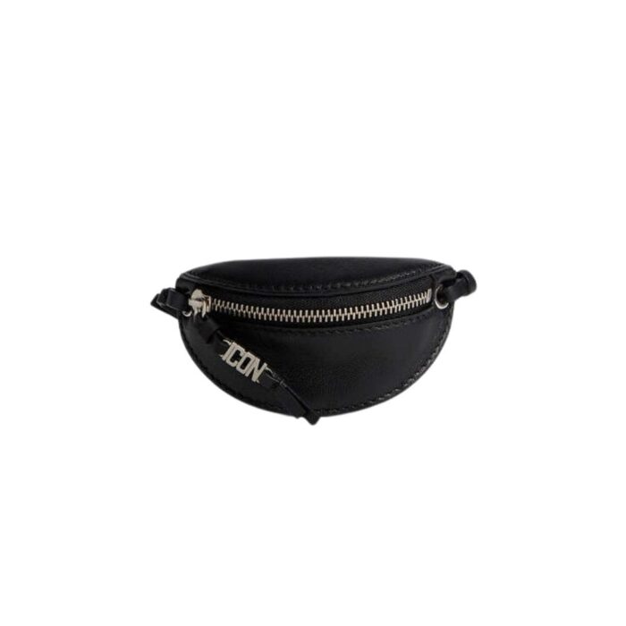 Crafted from fine leather, the belt bag exudes sophistication and durability. Its sleek black finish is versatile, ensuring it complements a wide range of evening outfits. The design features a minimalist yet bold appeal, with the prominent “ICON” logo emblazoned on the front in contrasting white letters. This signature detail not only highlights the brand’s identity but also adds a striking visual element that catches the eye.