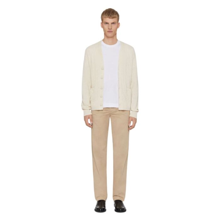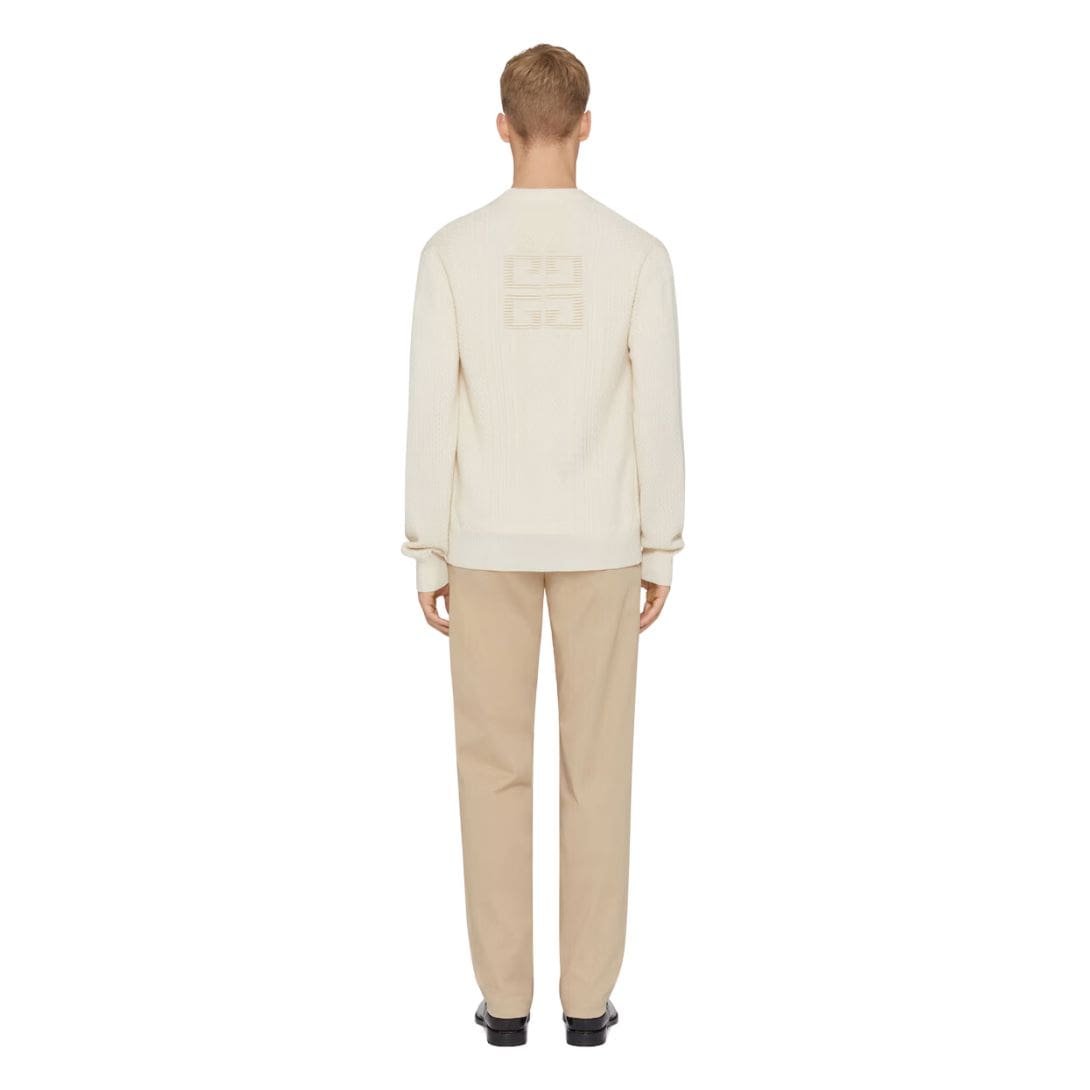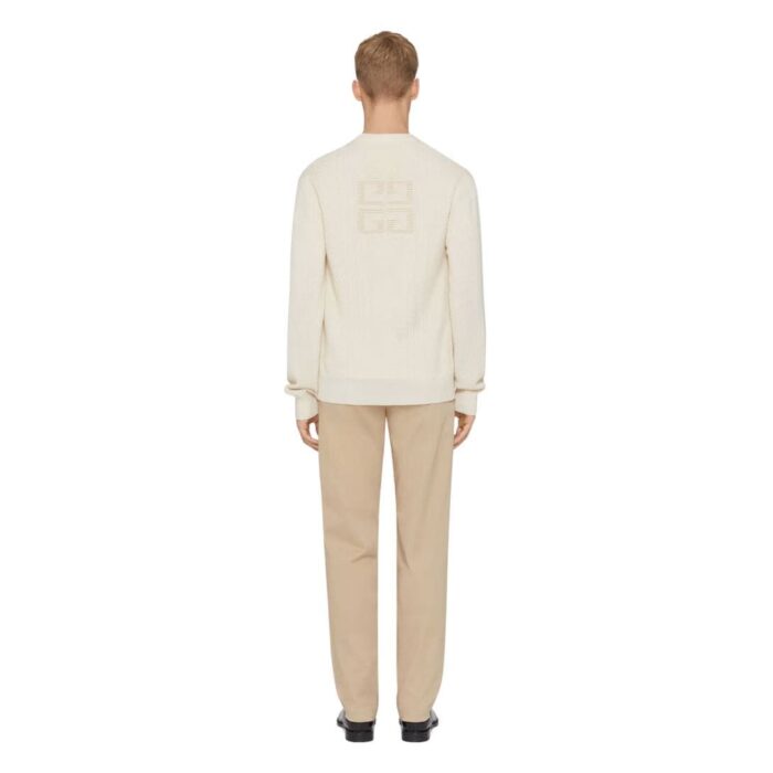 This cardigan features a relaxed, yet tailored fit, providing both comfort and a refined silhouette. The deep V-neckline is adorned with a button-down closure, allowing for versatile styling options. Whether worn open over a crisp shirt or buttoned up for a more polished look, it seamlessly adapts to various occasions. The buttons are meticulously crafted, often showcasing the Givenchy logo, adding a hint of opulence. GIVENCHY 4G CABLE KNIT CARDIGAN