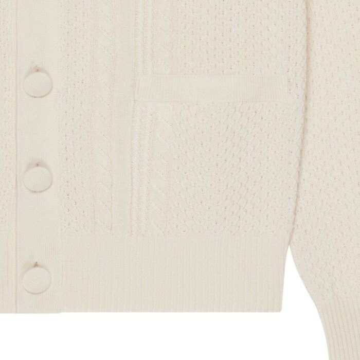 The Givenchy 4G Cable Knit Cardigan is a luxurious blend of classic style and modern sophistication. Crafted from premium wool, this cardigan showcases an intricate cable knit pattern that adds texture and depth to its design. The 4G motif, a hallmark of Givenchy’s iconic branding, is subtly integrated into the knit, offering a touch of understated elegance.