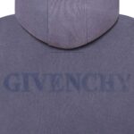 The hoodie features a distinctive Givenchy logo embossed on the front, subtly highlighted with a tonal shadow effect that adds depth and sophistication to its design. This emblematic detail serves as a refined statement of the brand’s identity without overwhelming the garment’s minimalist aesthetic. The classic hood comes with an adjustable drawstring, allowing for a customizable fit and added protection against the elements.