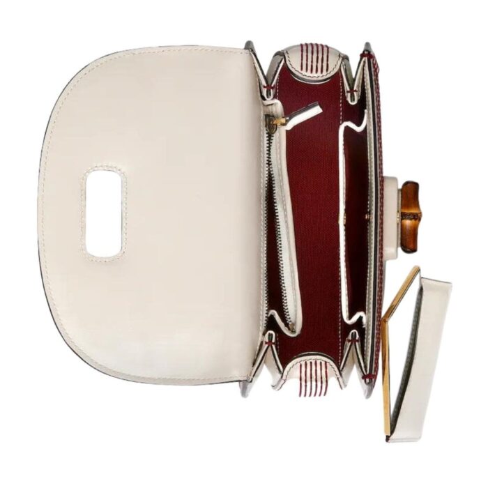 The bag features a spacious interior, designed to hold essentials with ease. The main compartment is lined with a soft fabric, adding an extra layer of comfort and protection for your belongings. An interior zip pocket offers additional organization, while the flap closure with a magnetic snap ensures security. The bag’s minimalist design is complemented by subtle Gucci branding, adding a touch of modern elegance without overpowering its classic appeal. GUCCI BAMBOO 1947 SMALL BAG