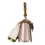 Crafted from high-quality leather, the Gucci Bamboo 1947 Small Bag exudes sophistication and durability. The leather is meticulously selected and treated to ensure a refined texture that feels luxurious to the touch. Its structured silhouette is accentuated by the polished bamboo handle, which is both functional and visually striking. The bamboo undergoes a unique steaming process to achieve its smooth, curved shape, highlighting the intricate craftsmanship involved.
