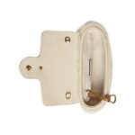 Despite its petite size, the bag is designed with practicality in mind. It features a flap closure that opens to reveal a surprisingly spacious interior for its dimensions, lined with suede-like microfiber. This interior can accommodate essentials such as a phone, keys, cards, and a small wallet, making it perfect for both day and evening use.