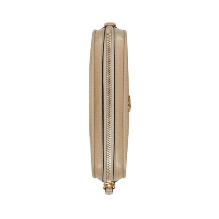 A defining feature of the GG Marmont Super Mini is the antique gold-toned hardware, particularly the iconic GG logo on the front flap. This emblematic detail is a nod to Gucci’s rich heritage and adds a touch of vintage glamour to the design. The chain shoulder strap, also in antique gold, complements the hardware and allows for versatile styling options. It can be worn as a crossbody, over the shoulder, or even used as a clutch by tucking the chain inside.