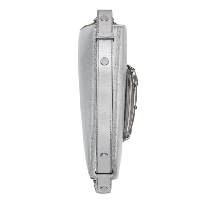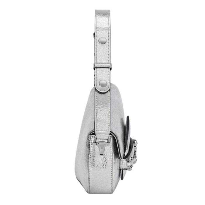 The bag’s practical design includes a structured silhouette that offers ample space for daily essentials. Its interior is lined with a luxurious microfiber fabric, reminiscent of suede, and features a zippered pocket and open compartments for organized storage. The magnetic snap closure ensures easy access while keeping belongings secure.