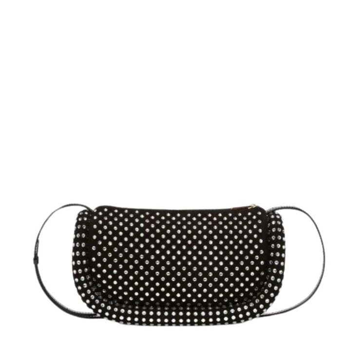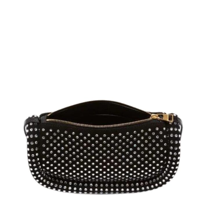 Adding a touch of glamour is the crystal application delicately embellished onto the bag’s exterior. These sparkling accents elevate the bag’s aesthetic, catching the light and adding a hint of opulence to every ensemble.