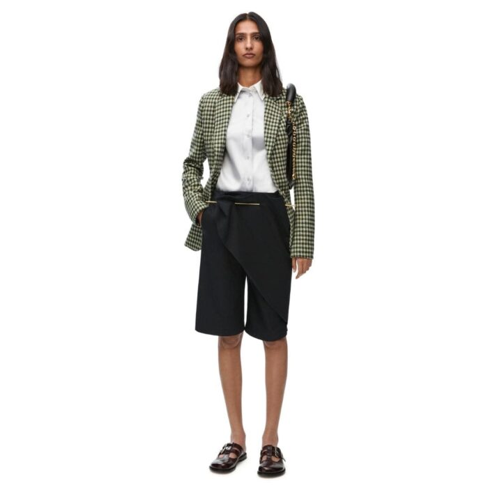 The attention to detail is a hallmark of Loewe’s design philosophy, and the pin shorts are no exception. The understated elegance of the shorts is complemented by their practical features, including side pockets for convenience and a relaxed waistband that ensures a comfortable fit. These elements combine to create a garment that is both stylish and practical, embodying the essence of modern luxury.