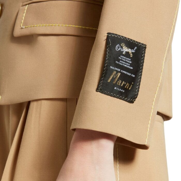 Ideal for those who appreciate understated luxury, this jacket seamlessly bridges the gap between classic and modern. Its neutral color palette makes it a versatile addition to any wardrobe, effortlessly pairing with everything from tailored trousers to casual denim. The Marni Beige Wool Jacket with Contrast Stitching is a testament to Marni’s commitment to quality and design innovation, offering a piece that is both timeless and trend-forward.