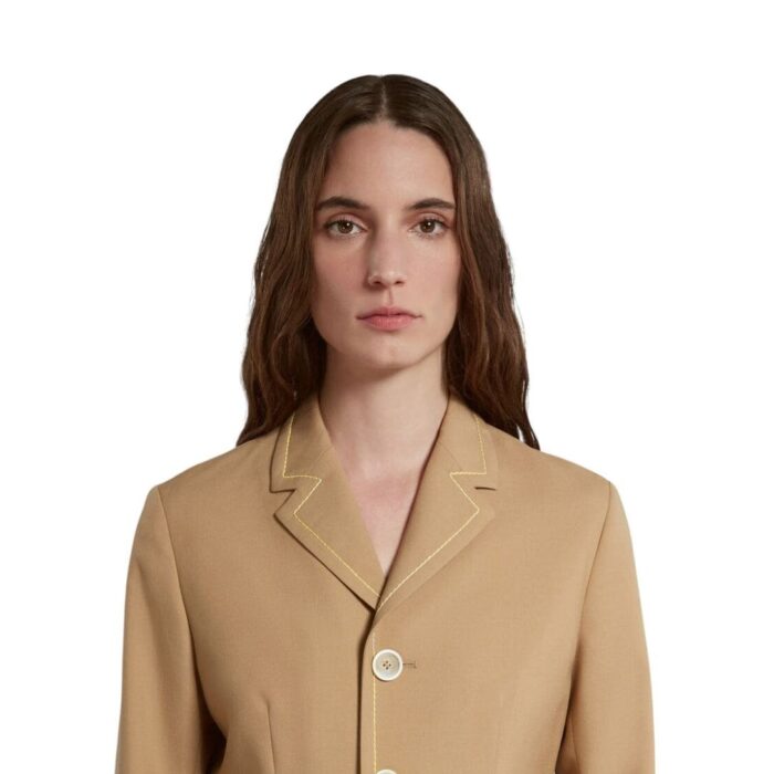 MARNI BEIGE WOOL JACKET WITH CONTRAST STITCHING