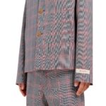 The blazer features a bold orange check pattern that commands attention and adds a vibrant pop to any outfit. The intricate pattern is precisely woven to maintain its structure and visual appeal, making it a perfect choice for those who want to make a fashion statement. The color palette is a striking contrast of warm tones, which can be easily paired with both neutral and complementary shades.