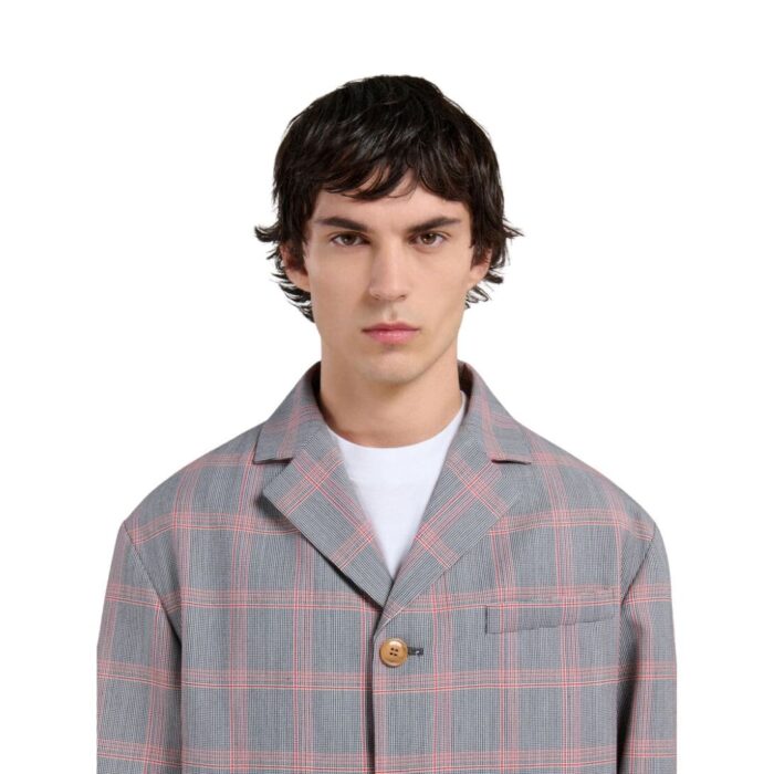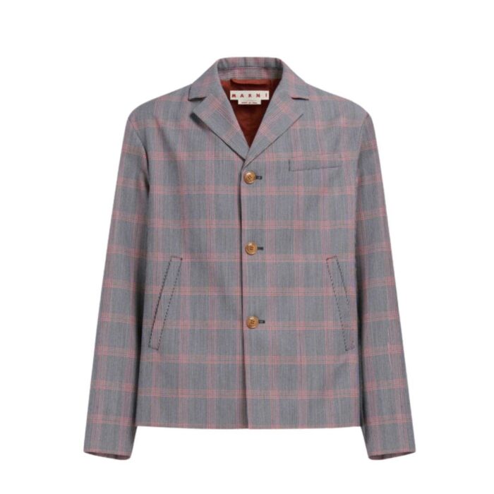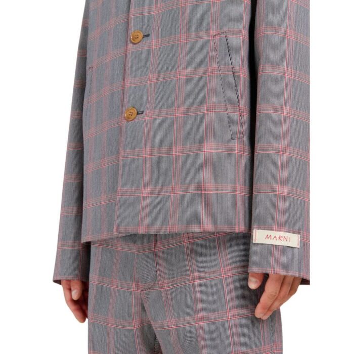 MARNI ORANGE CHECKED TECH WOOL BLAZER