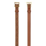 Adding to its allure is the gilded brass tongue buckle, a striking centerpiece that exudes opulence and refinement. Cast in 24k gold-plated brass, this emblematic buckle stands as a symbol of prestige and luxury, elevating the belt to new heights of sophistication. Its sleek design and intricate detailing add a touch of regal charm, making it a captivating focal point of the accessory.