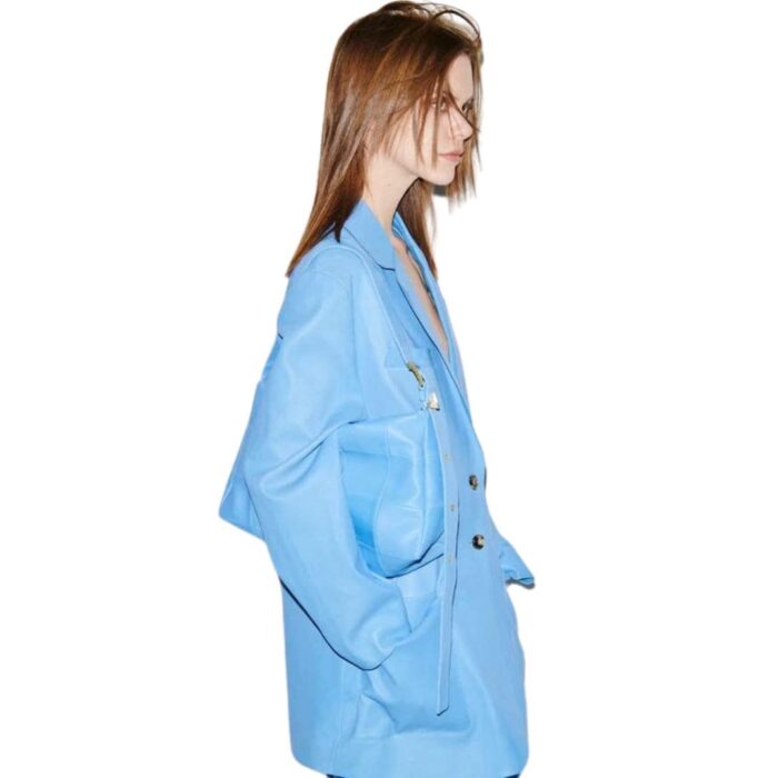The Stouls Elina leather Bag offers versatility and style, designed to be carried on the shoulder or across the body with an adjustable handle for a customized fit. It features a secure zipper closure and is crafted from a blend of 100% lamb leather, 97% cotton, 2.4% lyocell, and 0.6% elastane. The interior, lined with 100% recycled polyester, includes one zipped pocket, one bellows pocket, and one patch pocket for organized storage. Measuring L 35 x H 21 x D 14 cm, the bag’s buckle and eyelets are made of polished brass, which will develop a natural patina over time.