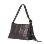 The Stouls Elina leather Bag offers versatility and style, designed to be carried on the shoulder or across the body with an adjustable handle for a customized fit. It features a secure zipper closure and is crafted from a blend of 100% lamb leather, 97% cotton, 2.4% lyocell, and 0.6% elastane. The interior, lined with 100% recycled polyester, includes one zipped pocket, one bellows pocket, and one patch pocket for organized storage. Measuring L 35 x H 21 x D 14 cm, the bag’s buckle and eyelets are made of polished brass, which will develop a natural patina over time.
