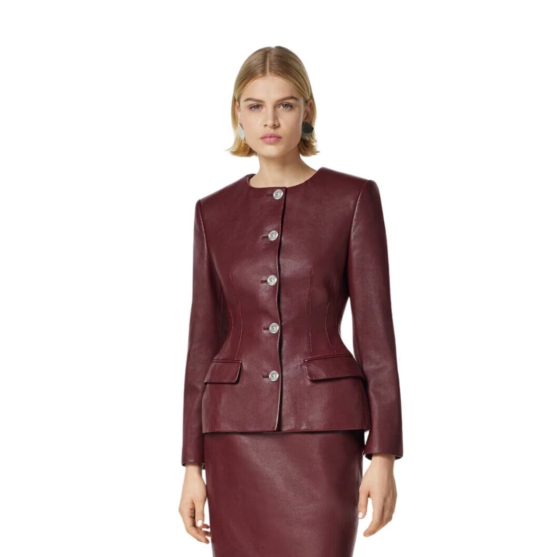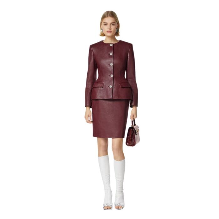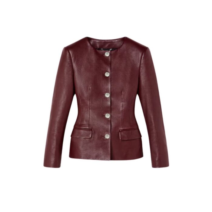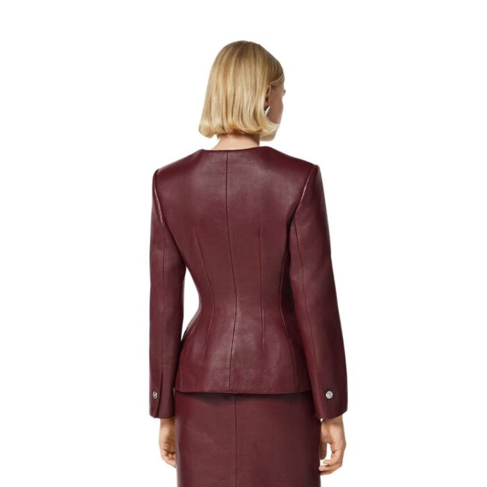 The rich color palette of the jacket further enhances its allure. Classic black lends a timeless elegance, while bold hues such as deep burgundy or vibrant red make a bold statement. Each color option is carefully selected to complement the luxurious leather and exude an air of refinement.