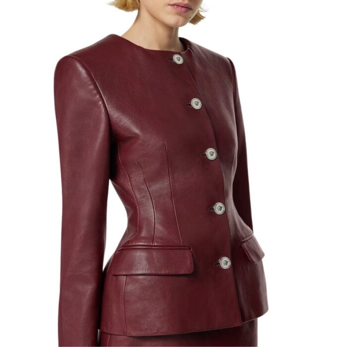 Versatility is another hallmark of the Versace Leather Hourglass Jacket. Whether paired with tailored trousers for a sophisticated daytime look or layered over a slinky dress for a night on the town, this jacket effortlessly transitions from day to night, making it a versatile addition to any wardrobe.